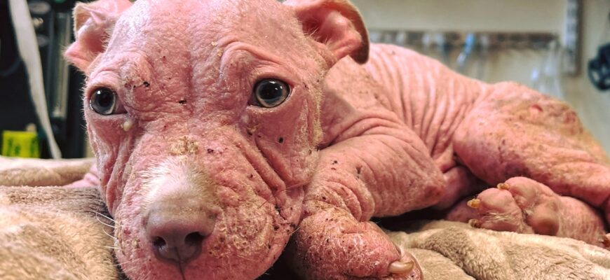 Wandering alone through an Arizona park, a senior dog with a soft, pink coat and…