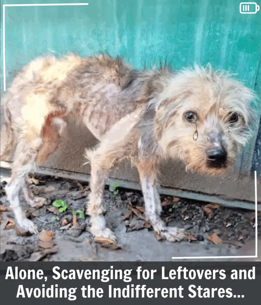 Frightned Dog Flees, Enduring Hunger and Illness Due to Rejection by People.