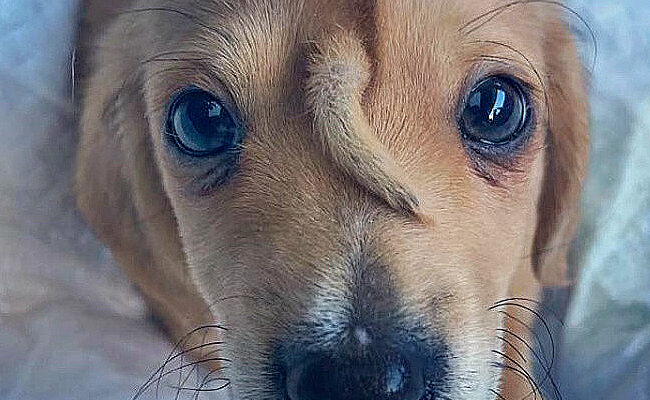 Happy ending for dumped ‘unicorn’ puppy with tail growing from its head