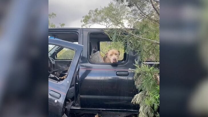 Starving Pittie Struggles To Find Food In A Decaying Truck In Hawaii, Then Sees A Kind Face