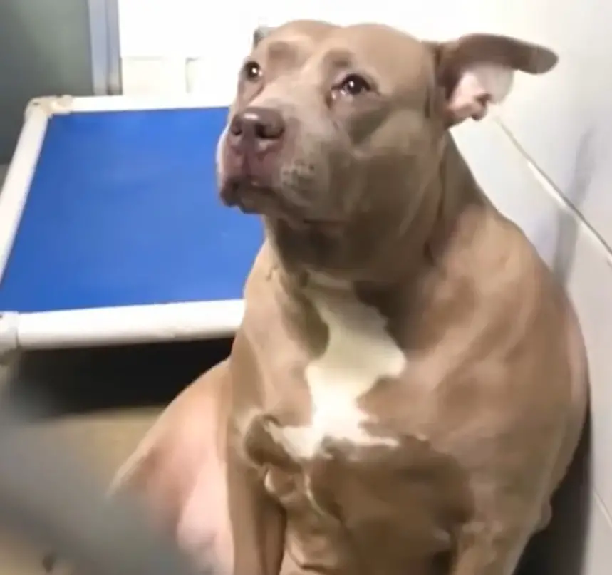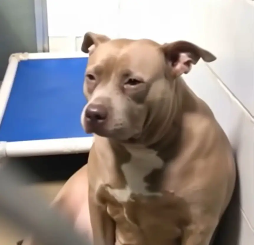 “I was walking up and down the kennels when I saw this pit bull sitting there, looking so sad and human-like,” Sarah later shared. Compelled by the dog’s demeanor, she bent down and began talking softly to her.
