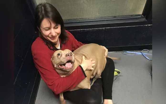 It all began with a visit to a North Carolina shelter run by Charlotte Mecklenburg Animal Care & Control. Among the many dogs waiting behind the kennels was a seven-year-old pit bull with a look that no passerby could ignore.